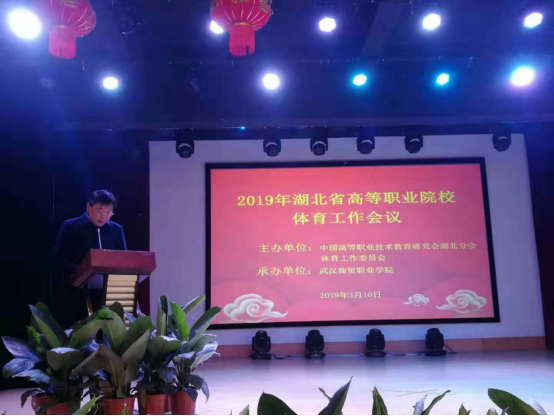 本网讯(通讯员孙红霞)3月10日上午,湖北省高职体育工作委员会2019年工作会议在武汉商贸职业学院图书馆会议室顺利召开,出席会议的有省高职体工委秘书长、副秘书长,各部门部长、副部长,各会员单位体育部(教研室 )主任,我院体育教师李娥、吴文敏作为代表参加了此次会议。