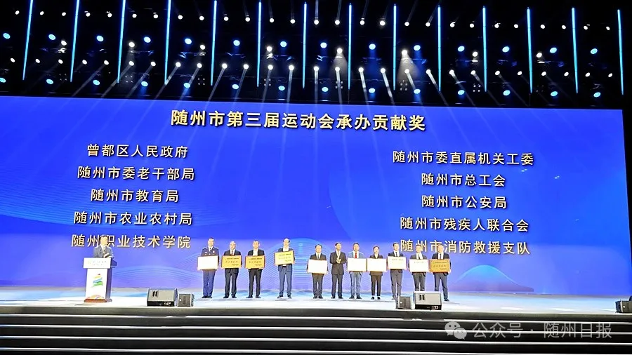 10月31日晚,随州市第三届运动会在随州城市公共活动中心户外广场圆满闭幕。在此次运动会的激烈角逐中,我校30余名教师组成的代表队凭借出色的表现脱颖而出,最终荣获10个单项奖、团体总分(职工组)第二名的好成绩,学校被授予随州市第三届运动会“承办贡献奖”。